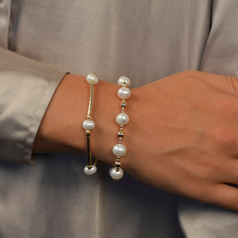Our gold and pearl bracelet is made from 14ct gold fill. The perfect gift for someone special.