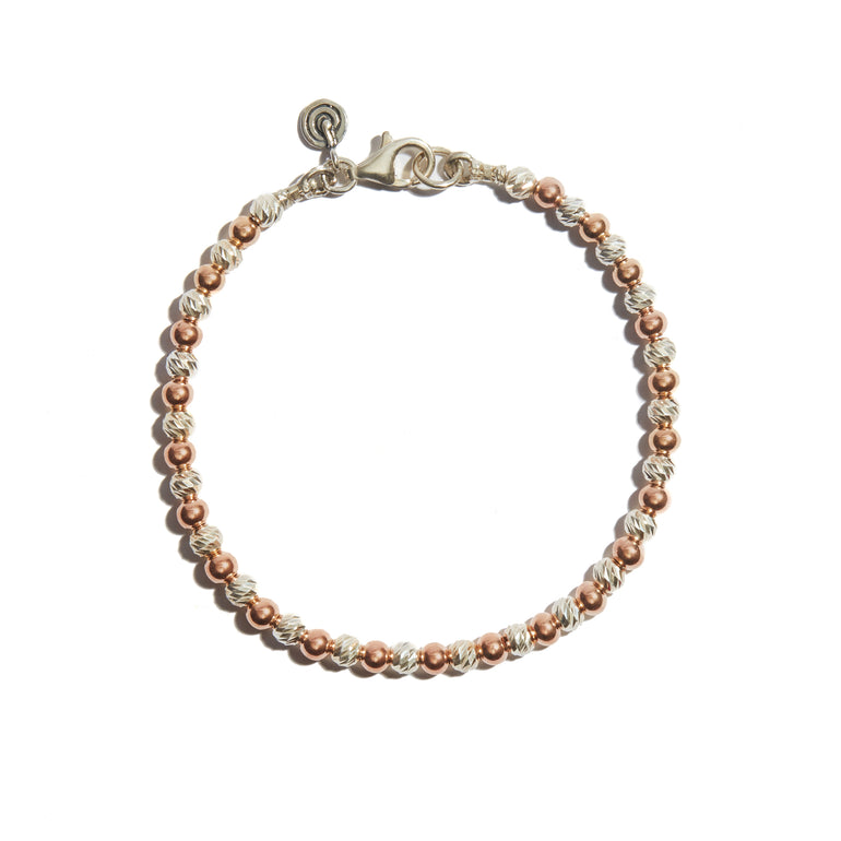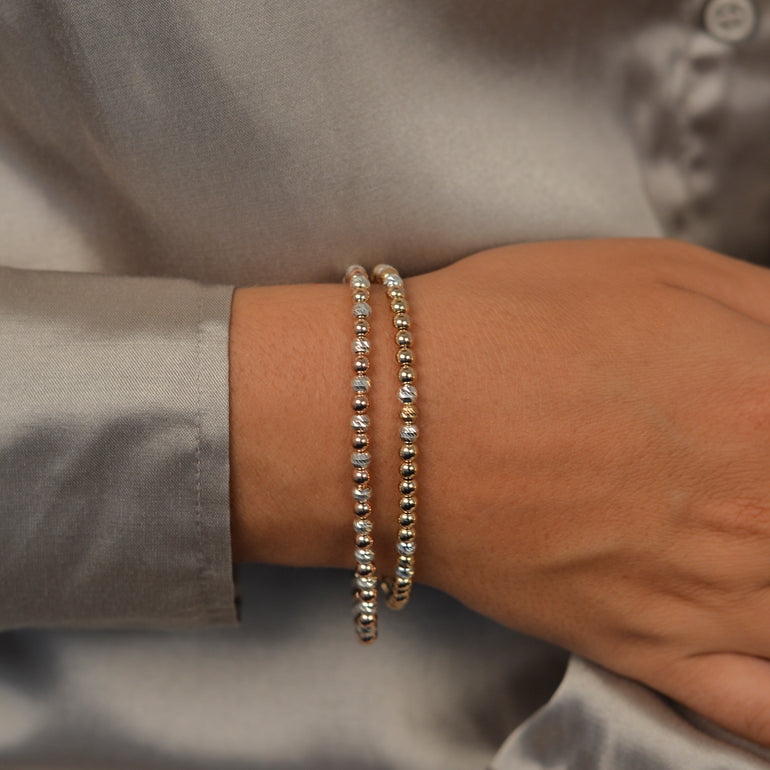 A stunning two-tone sparkle bracelet alternating beads made of 14ct gold fill and sterling silver, adding sparkle and elegance to your wrist.