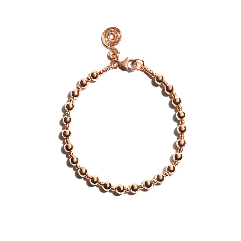 Photo of our Stackable Gold Bracelet features large and small consecutive strung beads, complete with a Seoidín Celtic spiral at the clasp. A much loved feature of Seoidín designs, the celtic spiral pays homage to Ireland, our infinite inspiration.