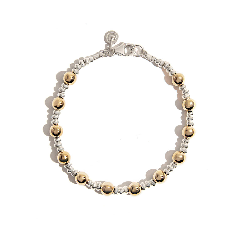 This elegant bracelet features a stunning blend of 14ct gold-filled and silver beads, offering a timeless and versatile design that adds a touch of sophistication to any look