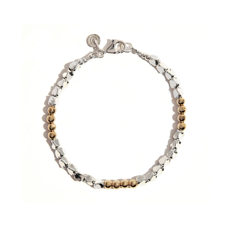 This elegant bracelet features striking silver cubes paired with 14ct gold-filled beads, creating a sophisticated two-tone design that adds a touch of luxury to any outfit