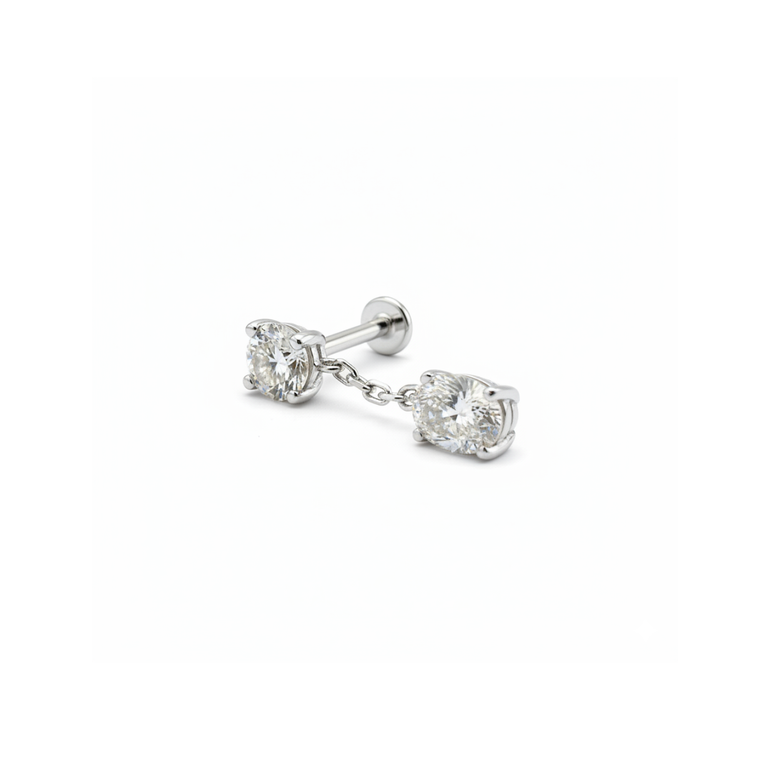 A modern twist on a classic stud. The Linked Duo Flat Back features two brilliant stones connected by a delicate chain, creating subtle movement and a unique, layered effect.