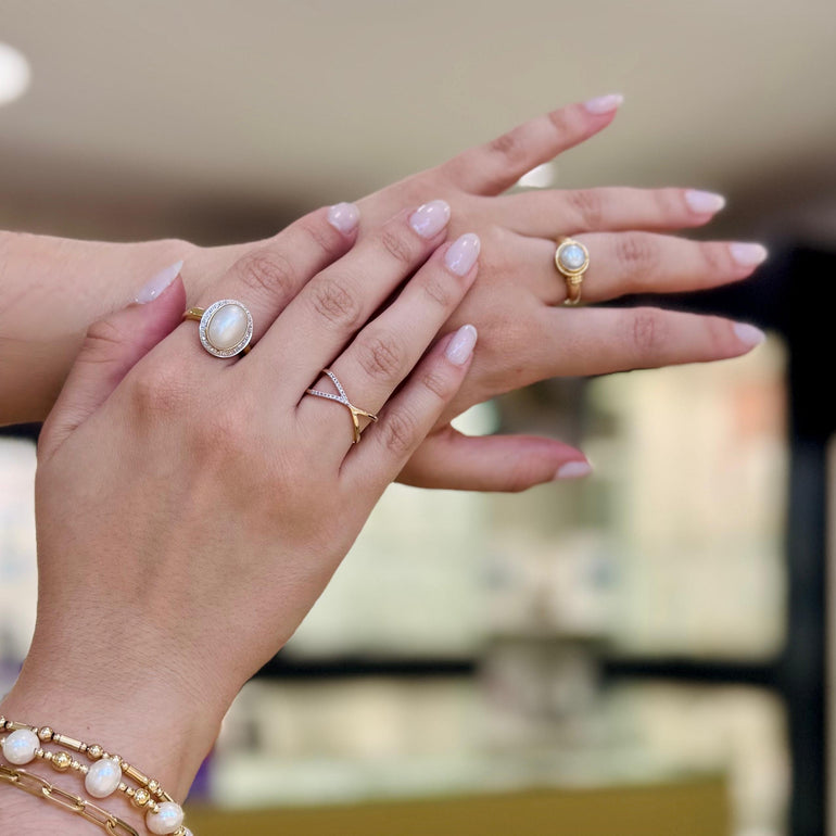 9ct Vintage-Style Mabe Pearl and Diamond Halo Ring