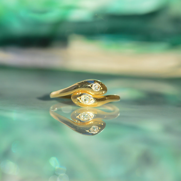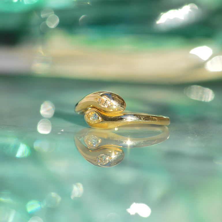 18ct Vintage Diamond Gold Toi Et Moi Snake Ring