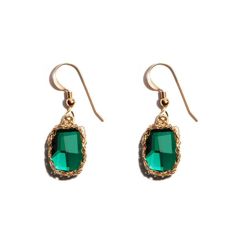 These emerald green and gold drop earrings are made from 14ct gold fill. The perfect gift for someone special.