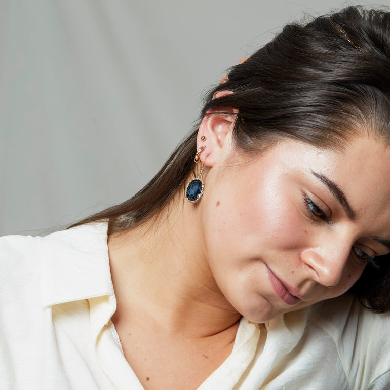 Deep Blue Crochet Drop Earrings - Silver