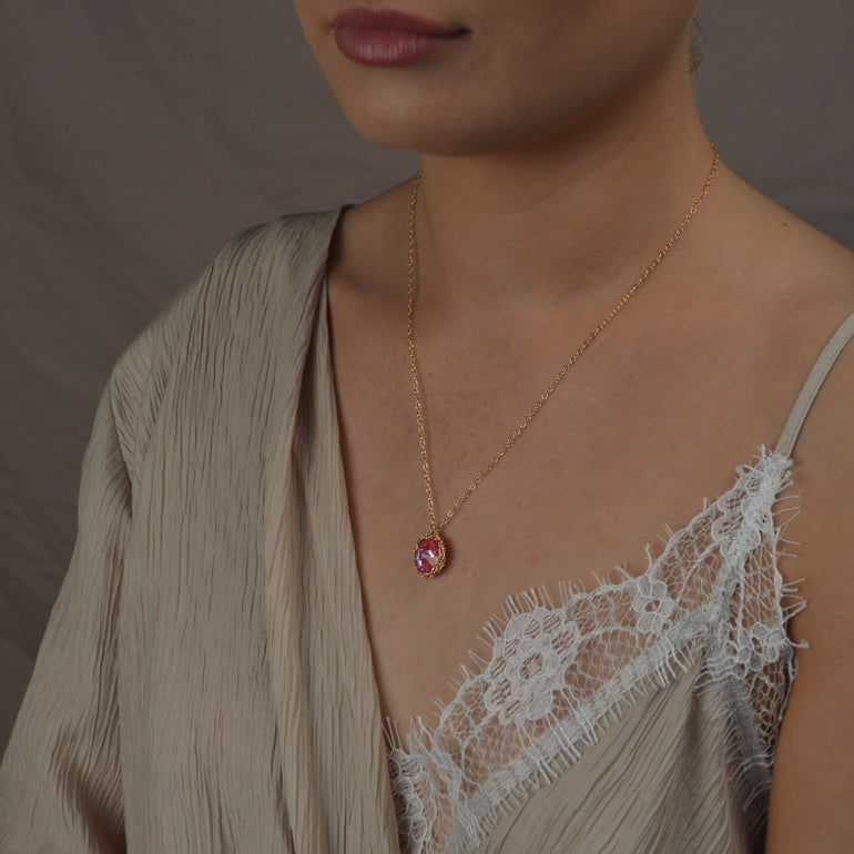 This vibrant pink stone necklace is made from 14ct gold fill. The perfect gift for someone special.