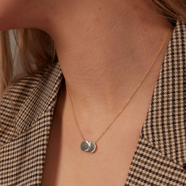 A beautiful and simple piece, the 9 carat gold Double Disc Necklace is a gold-lovers essential. Perfect for layering with other gold chains or as a simple and beautiful piece all by itself.