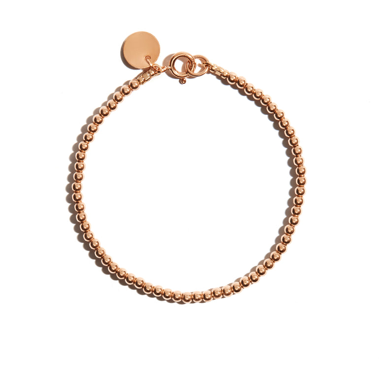 Our Delicate Stacking Bracelet is a simple style with small, delicate gold beads and a gold coin charm at the clasp. It is a classic, simple style making it an elegant and feminine choice when worn alone, but is also a perfect base for stacking.