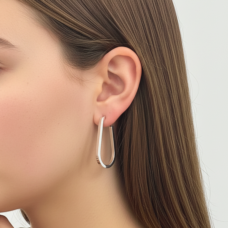 Minimal and elegant, the Teardrop Hoops feature a sleek open design with a polished silver finish. Perfect for everyday wear or evening looks, these lightweight earrings add a touch of modern sophistication to any outfit.