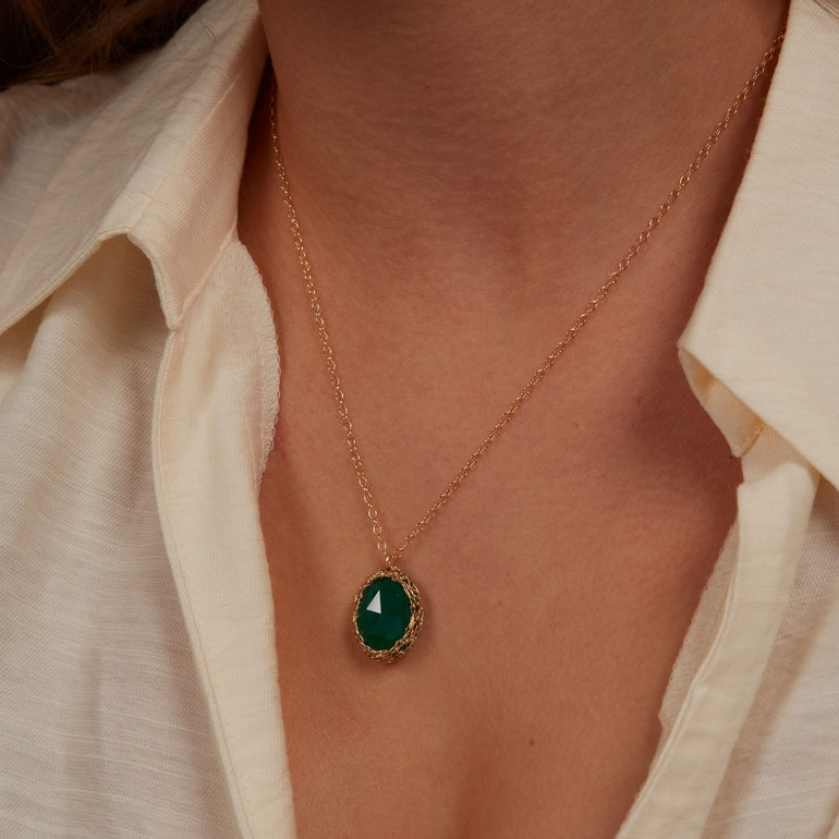 This emerald green hand crochet necklace is made from 14ct gold fill. The perfect gift for someone special and to add a splash of colour to your wardrobe.