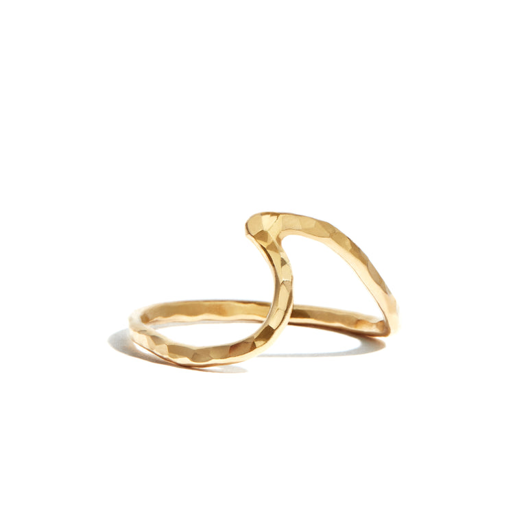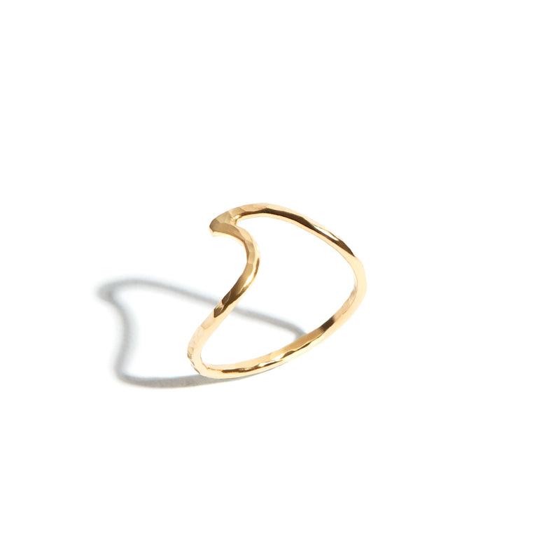 Our beautiful Wave Ring is a delicate band of gold, with a single wave formation. It is made with hammered gold, a Seoidín favourite, to give a distinctive textured finish.- 14 carat gold-fill