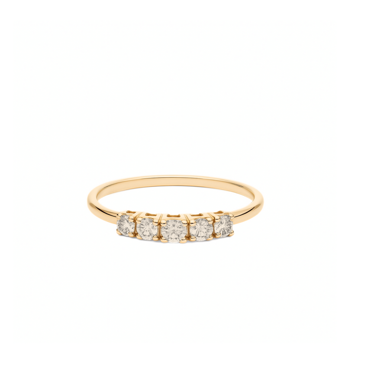 Crafted in 9ct gold, this elegant band features five round-cut diamonds, totaling approximately 0.13 carats. Slim and refined, it's the perfect choice for stacking, everyday wear, or as a subtle yet meaningful gift.