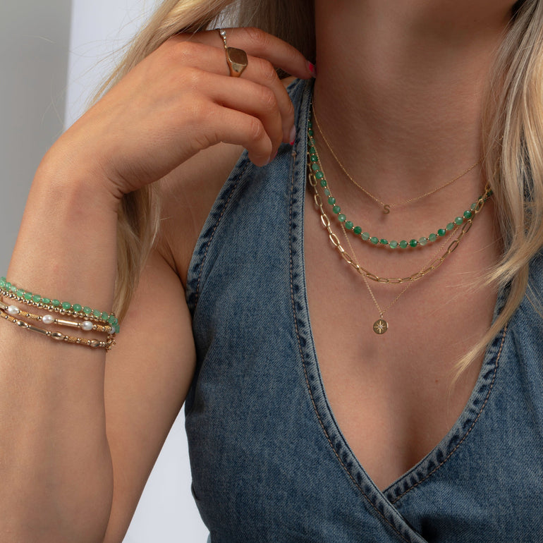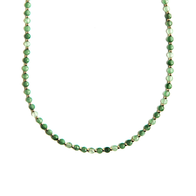 Perfect for adding a touch of elegance to any outfit, this necklace combines the serene allure of green agate with the luxurious shine of gold-filled beads.