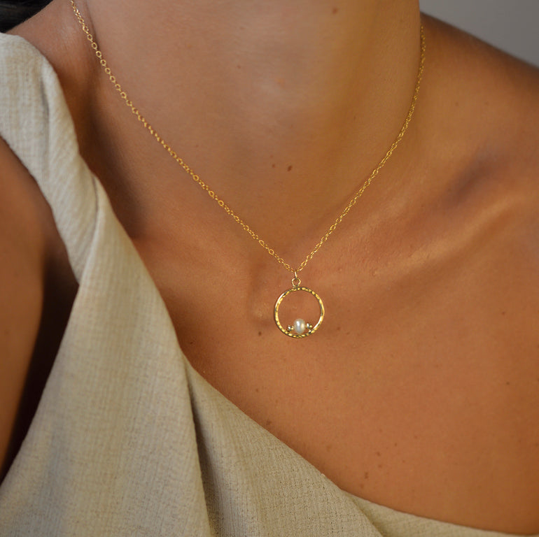 Our open circle and pearl necklace is made from 14ct gold fill. The perfect gift for someone special.